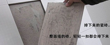 • 貼磚時(shí),水泥砂漿與瓷磚背面孔隙的機(jī)械咬合易失效。